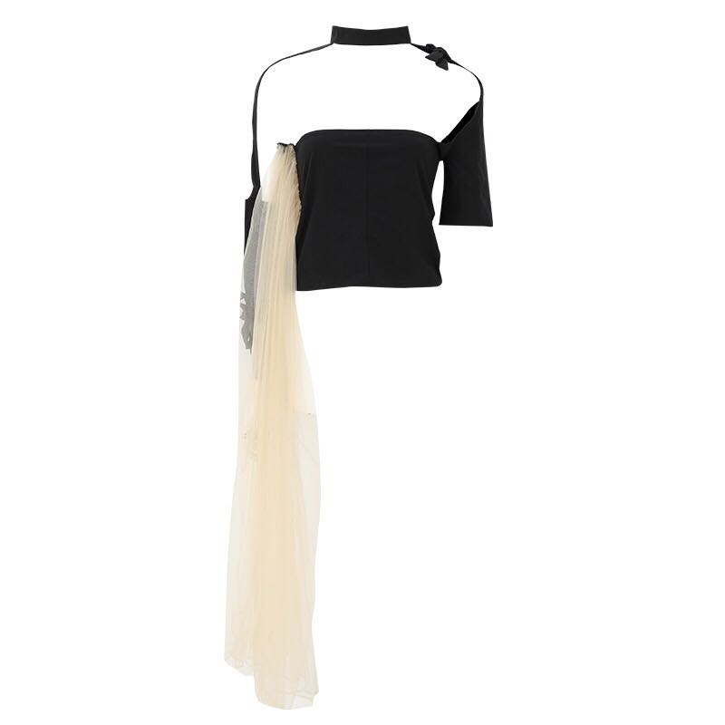 挂脖丝带上衣
