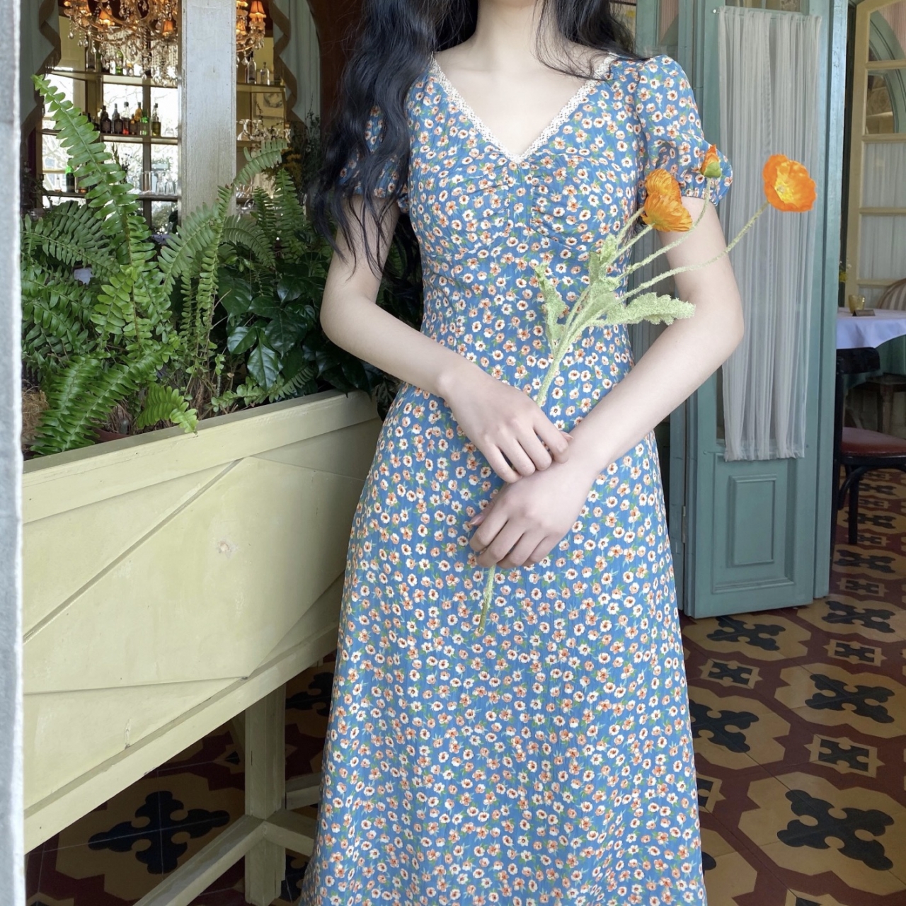Home> Clothing, Shoes & Jewelry> Women> Clothing> New floral dress summer French gentle snow spinnin