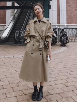 Home> Clothing, Shoes & Jewelry> Women> Clothing> 大码女装秋季新款卡其色风衣中长款韩版宽松外套气质显瘦包邮 黑色 雾霾蓝 L XL XXL XXXL