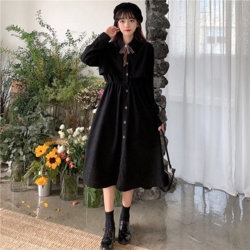 Home> Clothing, Shoes & Jewelry> Women> Clothing> 大码女装胖妹没秋季新款长袖连衣裙收腰法式小众气质长裙 黑色酒红色 黑色 酒红色 L XL XXL