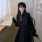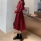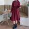 大码女装胖妹没秋季新款长袖连衣裙收腰法式小众气质长裙 黑色酒红色 黑色 酒红色 L XL XXL