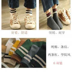 袜子女中筒袜纯棉日系秋冬条纹运动中长款袜