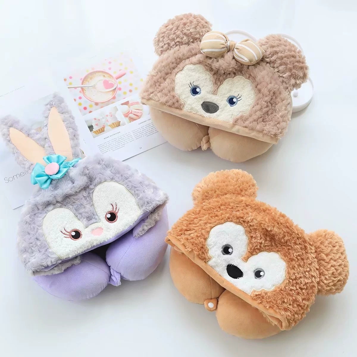 少女心可爱卡通小熊兔子U型护颈午睡枕头
