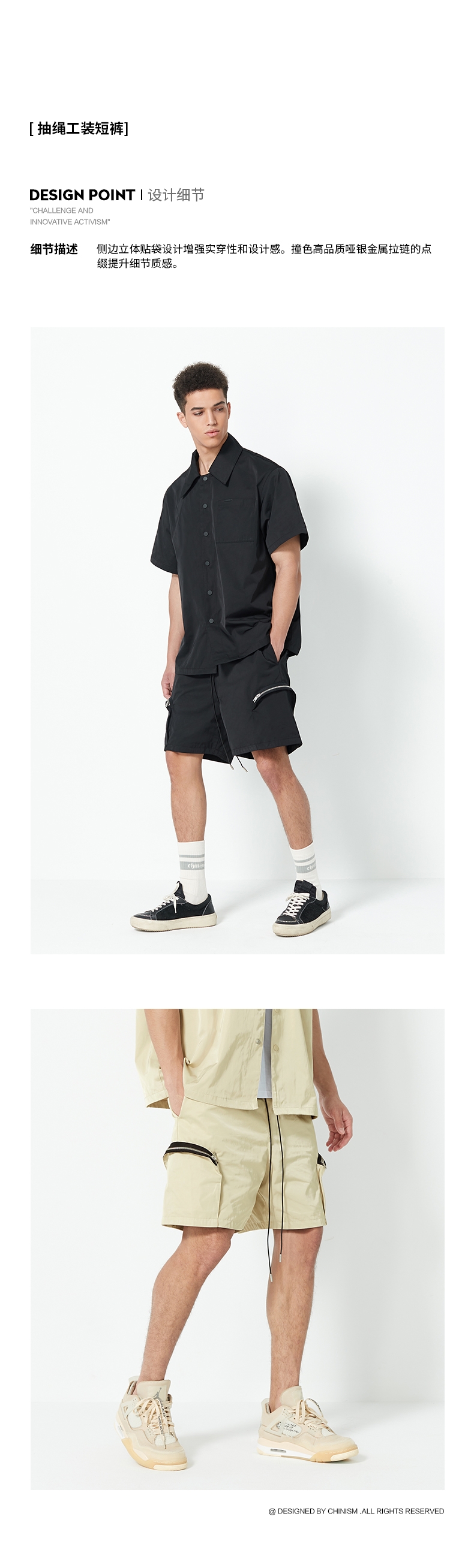 CHINISM 2021SS CH 侧边立体贴袋梭织短裤男宽松高街休闲五分裤潮 米黄色 S,M,L,