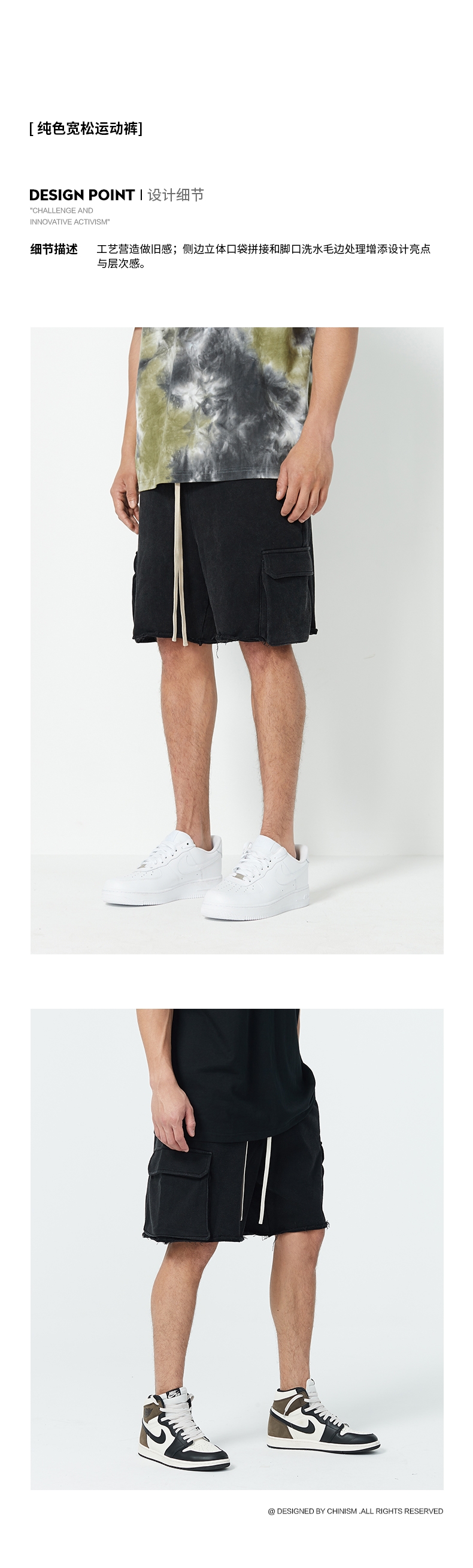CHINISM 2021SS CH 侧边拼接立体大口袋短裤男纯色脚口毛边五分裤 黑色 S,M,L,X